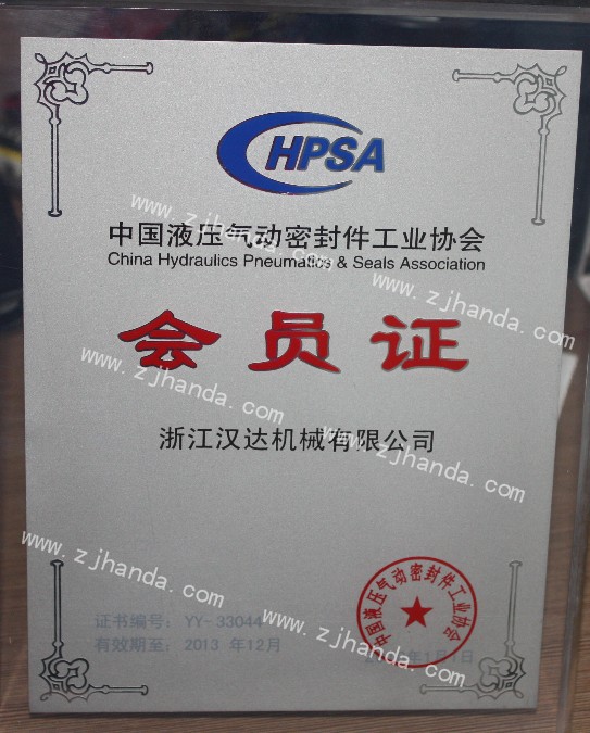 中國液壓氣動密封件協(xié)會會員證