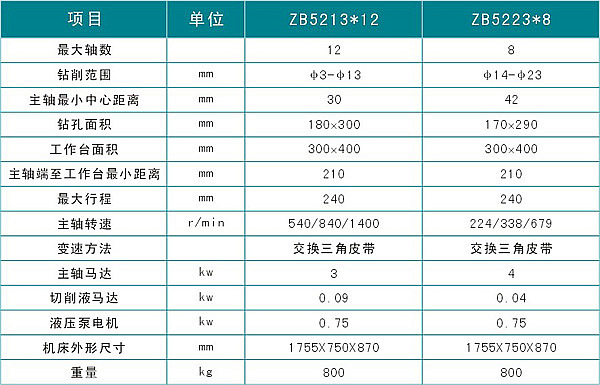 ZB5223*8立式多軸鉆床,是半自動(dòng)多軸鉆床,采用按鈕式操作,操作維護(hù)簡單,對(duì)工人技能要求低。