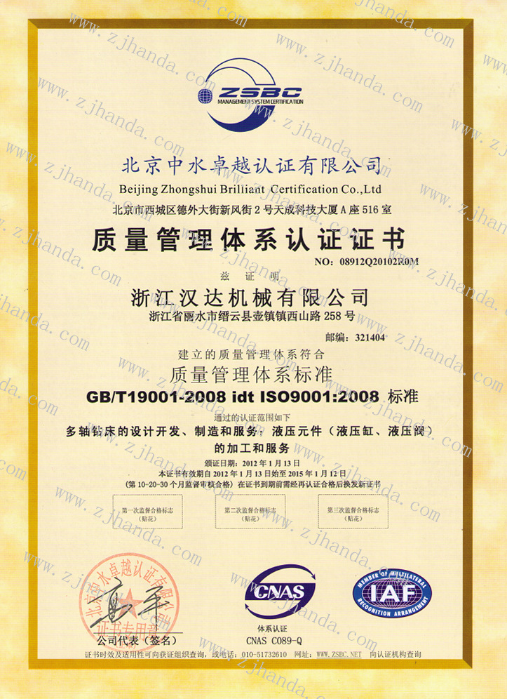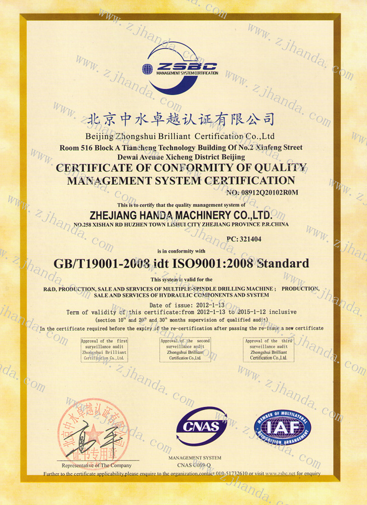 ISO9001::2008中文版證書